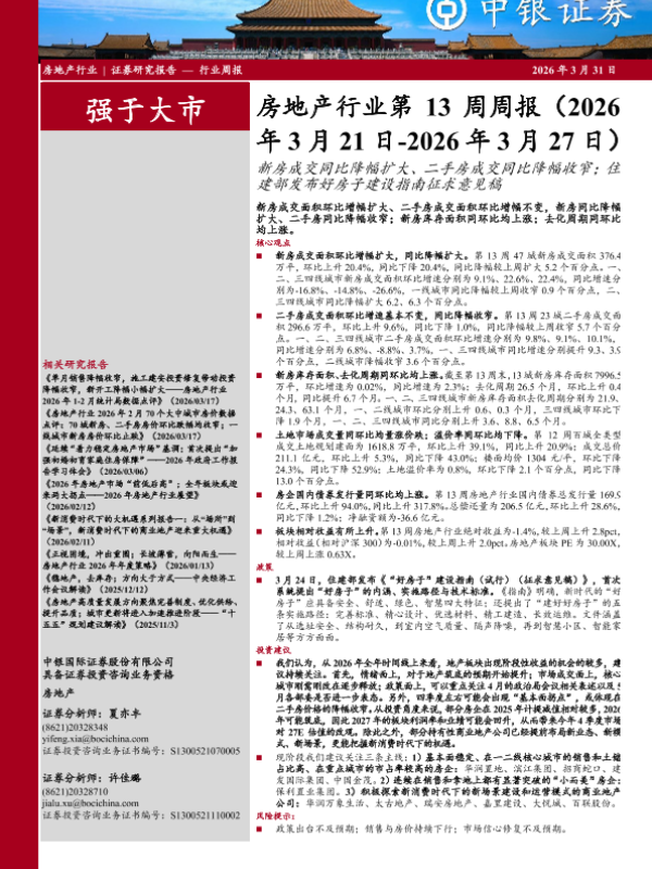 【中银证券】【202603】房地产行业第13周周报(2026年3月21日-3月27日)-29页 证券期货研究报告