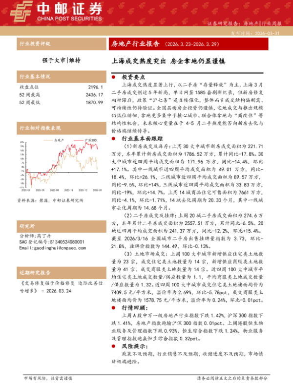 【中邮证券】【202603】房地产行业周报:上海成交热度突出,房企拿地仍显谨慎-11页 证券期货研究报告