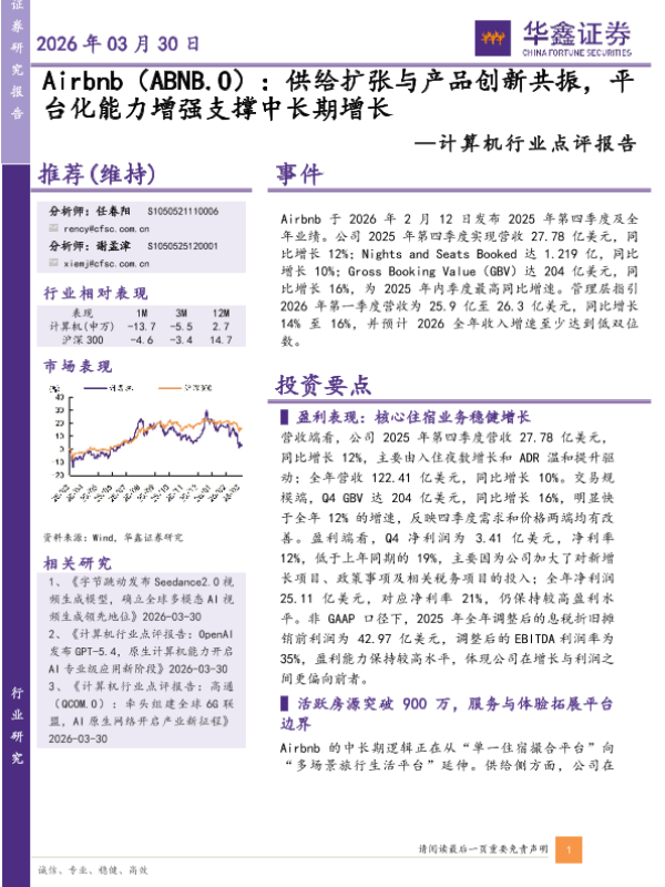 【华鑫证券】【202603】Airbnb(ABNB.O):供给扩张与产品创新共振,平台化能力增强支撑中长期增长-5页 证券期货研究报告