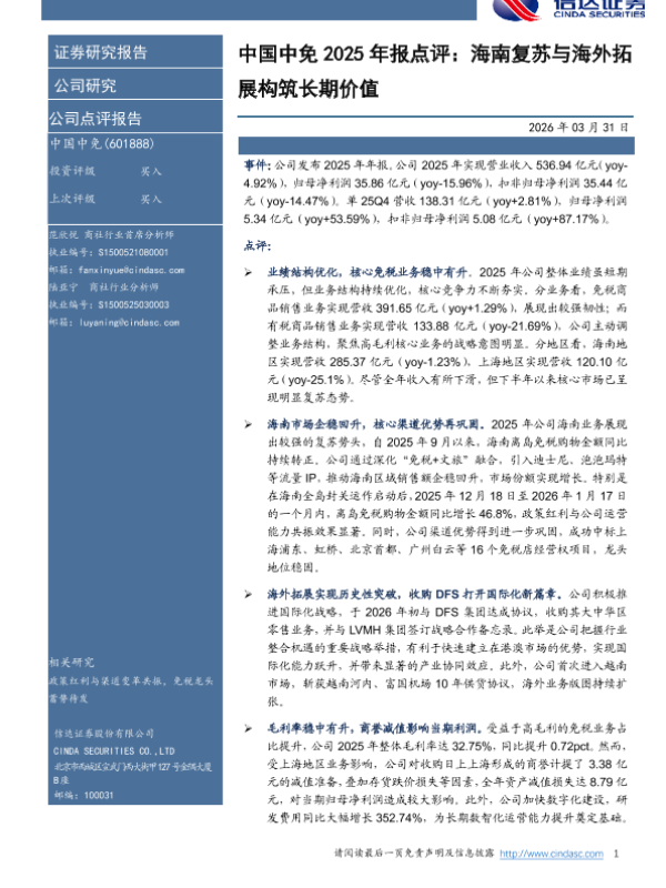 【信达证券】【202603】中国中免2025年报点评:海南复苏与海外拓展构筑长期价值-5页 证券期货研究报告