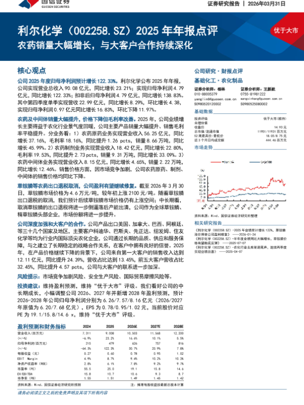【国信证券】【202603】2025年年报点评:农药销量大幅增长,与大客户合作持续深化-6页 财报