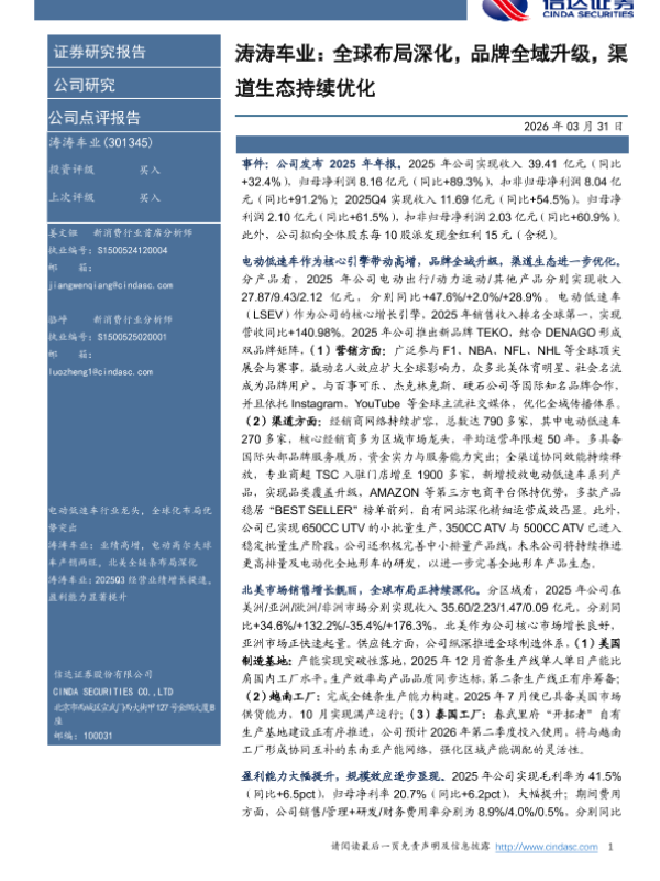 【信达证券】【202603】涛涛车业:全球布局深化,品牌全域升级,渠道生态持续优化-5页 证券期货研究报告