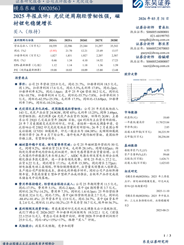 【东吴证券】【202603】2025年报点评:光伏逆周期经营韧性强,磁材锂电稳健增长-3页 证券期货研究报告