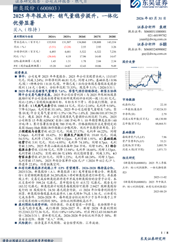 【东吴证券】【202603】2025年年报点评:销气量稳步提升,一体化优势显著-8页 证券期货研究报告