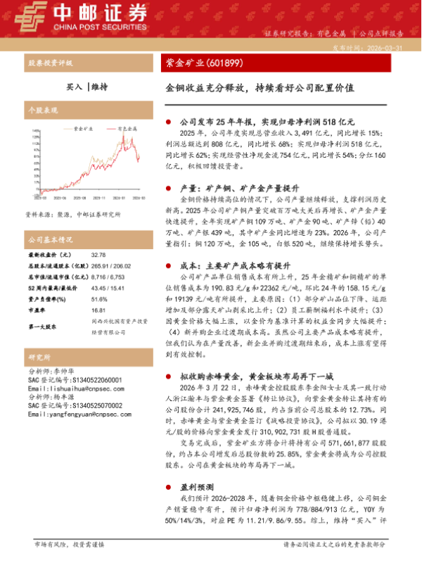 【中邮证券】【202603】金铜收益充分释放,持续看好公司配置价值-5页 证券期货研究报告