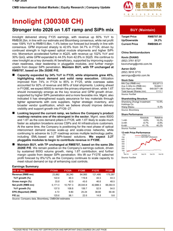 【CMB International Global Markets】【202604】Stronger into 2026 on 1.6T ramp and SiPh mix-5页 证券期货研究报告
