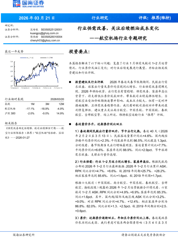 【国海证券】【202603】航空机场行业专题研究:行业供需改善,关注后续燃油成本变化-16页 行业研究