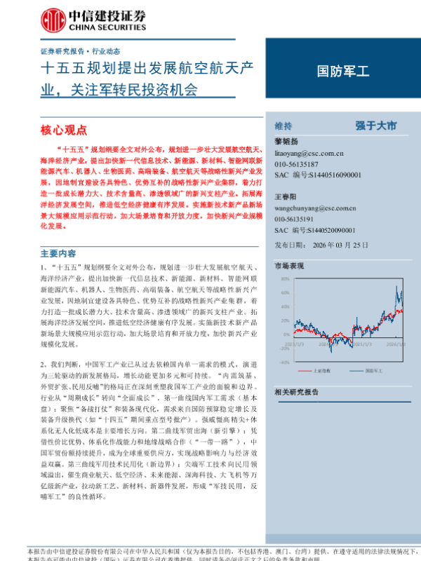 【中信建投证券】【202603】十五五规划提出发展航空航天产业,关注军转民投资机会-22页 证券期货研究报告