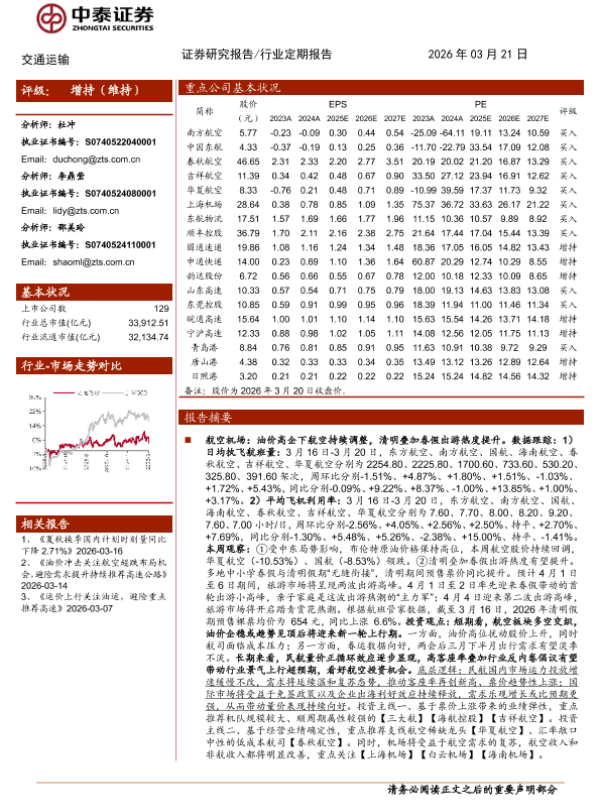 【中泰证券】【202603】交通运输行业:快递“反内卷”头部强化效应凸显,避险需求提升持续推荐高速-25页 证券期货研究报告