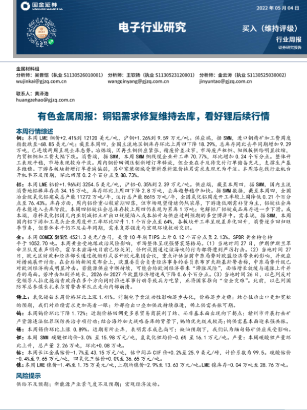 【国金证券】【202603】有色金属周报-15页 证券期货研究报告