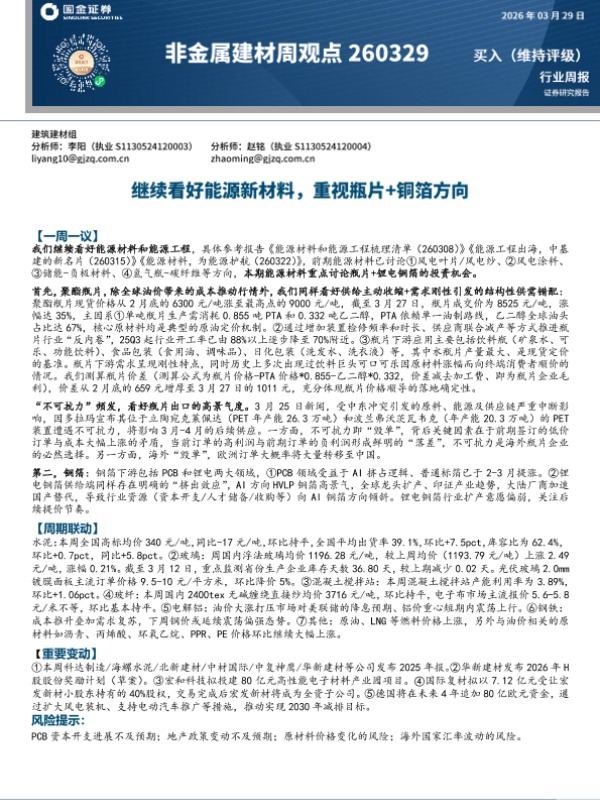 【国金证券】【202603】非金属建材周观点:继续看好能源新材料,重视瓶片+铜箔方向-18页 证券期货研究报告