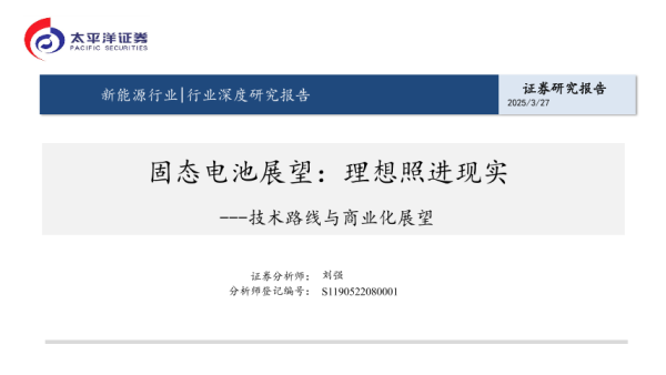 【太平洋证券】【202503】固态电池展望:理想照进现实-技术路线与商业化展望-35页 证券期货研究报告