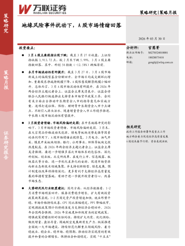 【万联证券】【202603】地缘风险事件扰动下,A股市场情绪回落-16页 证券期货研究报告