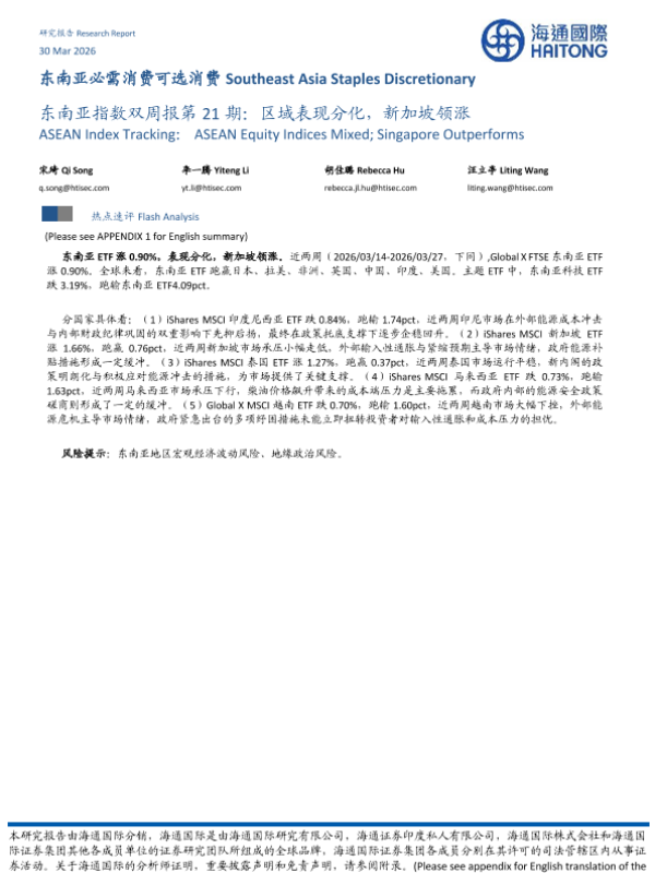 【海通国际】【202603】东南亚指数双周报第21期:区域表现分化,新加坡领涨-18页 证券期货研究报告