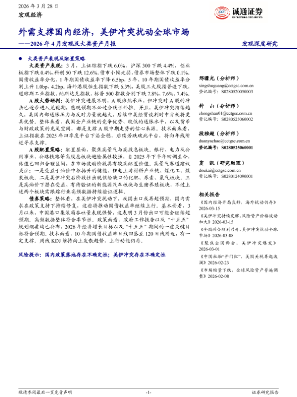 【诚通证券研究所】【202604】2026年4月宏观及大类资产月报:外需支撑国内经济,美伊冲突扰动全球市场-12页 证券期货研究报告