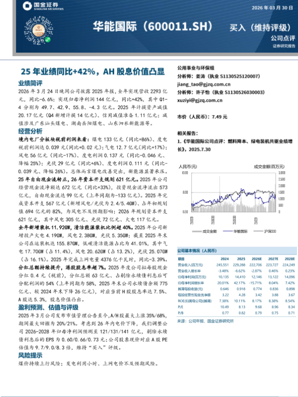 【国金证券】【202603】25年业绩同比+42%,AH股息价值凸显-6页 证券期货研究报告