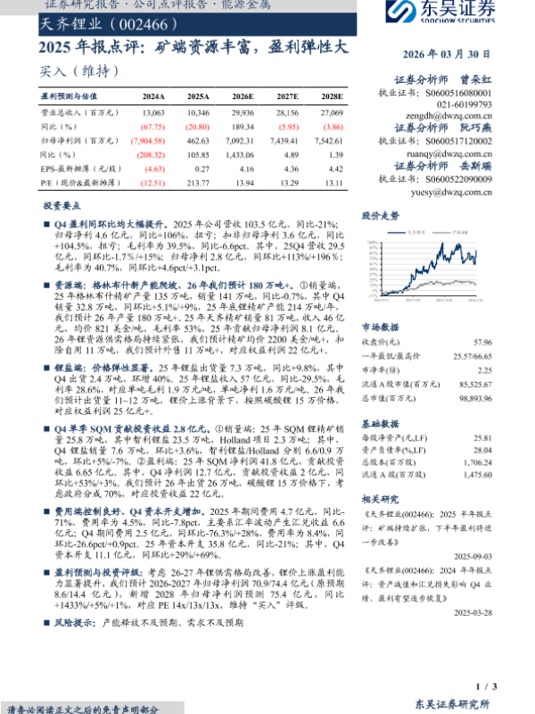 【东吴证券】【202603】2025年报点评:矿端资源丰富,盈利弹性大-3页 证券期货研究报告
