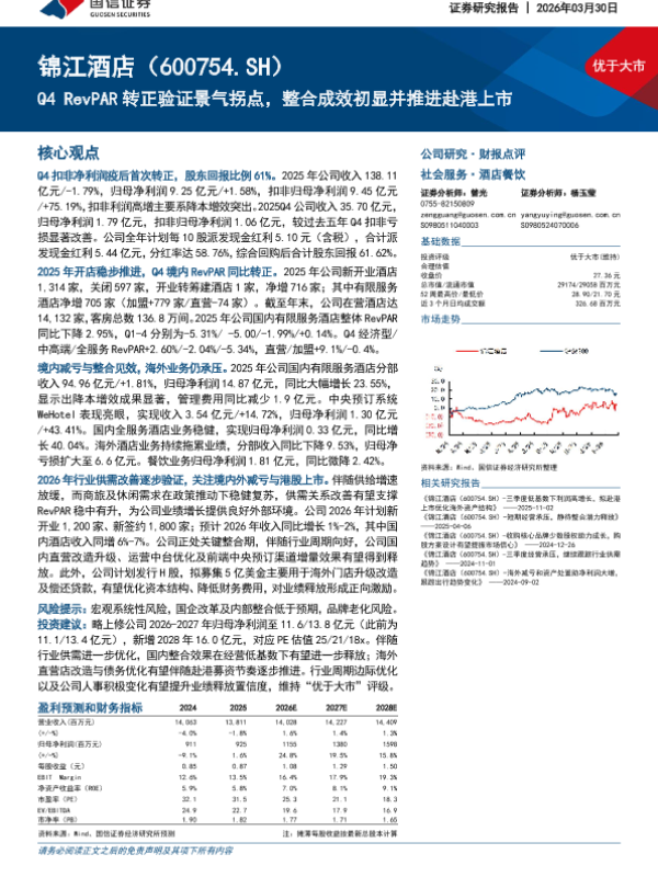 【国信证券】【202603】Q4 RevPAR转正验证景气拐点,整合成效初显并推进赴港上市-5页 证券期货研究报告