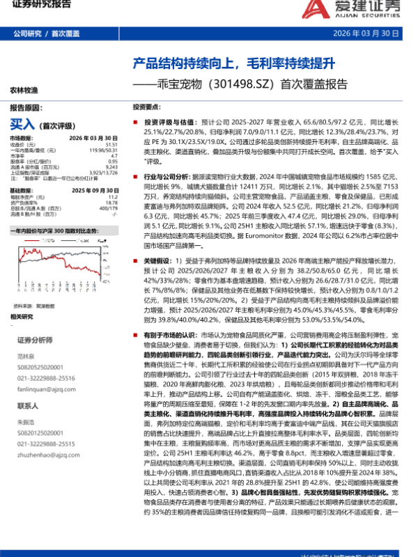 【爱建证券】【202509】产品结构持续向上,毛利率持续提升——乖宝宠物(301498.SZ)首次覆盖报告-6页 证券期货研究报告