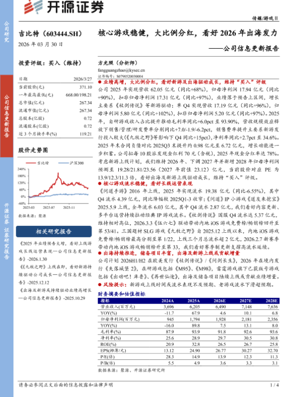 【开源证券】【202603】核心游戏稳健,大比例分红,看好2026年出海发力-4页 证券期货研究报告