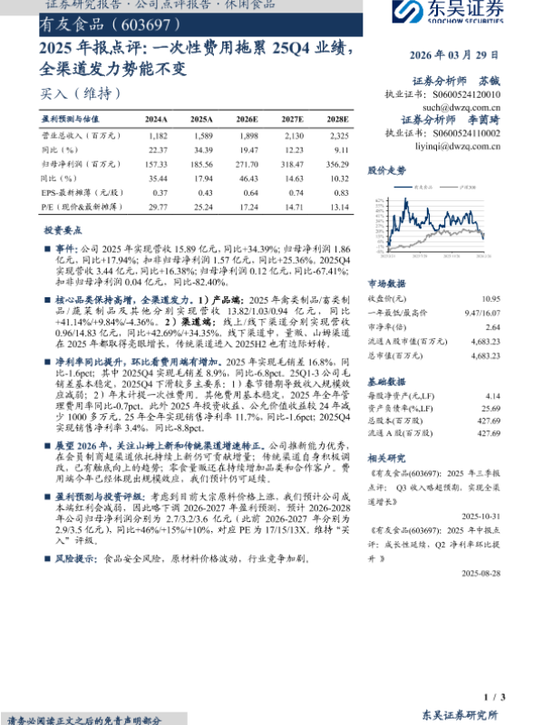 【东吴证券】【202603】2025年报点评:一次性费用拖累 25Q4业绩,全渠道发力势能不变-3页 证券期货研究报告