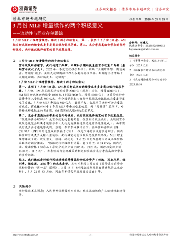 【浙商证券】【202603】3月份 MLF增量续作的两个积极意义——流动性与同业存单跟踪-11页 证券期货研究报告