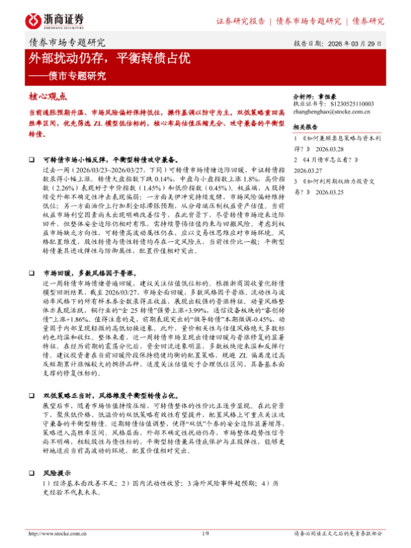 【浙商证券】【202603】外部扰动仍存,平衡转债占优——债市专题研究-9页 证券期货研究报告