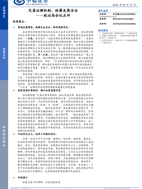 【华福证券】【202603】完善治理机制,统筹发展安全——政治局会议点评-5页 宏观策略