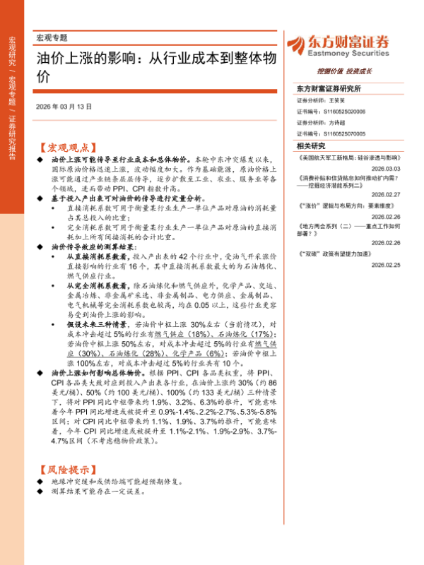 【东方财富证券】【202603】油价上涨的影响:从行业成本到整体物价-11页 证券期货研究报告