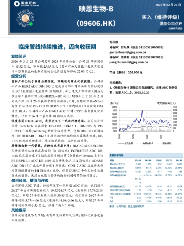 【国金证券】【202603】映恩生物-B(09606.HK):临床管线持续推进,迈向收获期-4页 证券期货研究报告