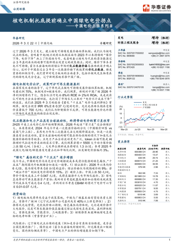 【华泰证券】【202603】核电机制电价政策试点辽宁,首年将带来红利 - 华泰证券-25页 行业研究