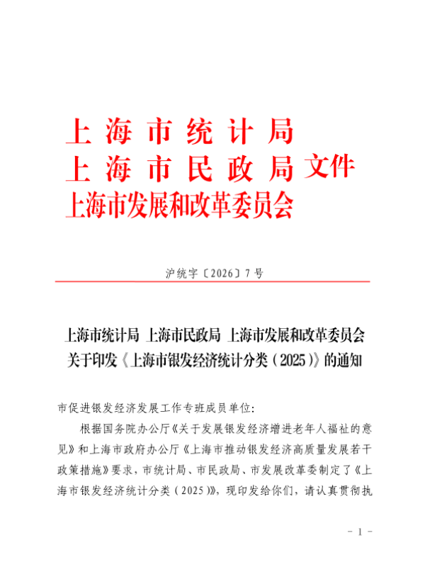 【上海市统计局&上海市民政局&上海市发展和改革委员会】【202602】上海市银发经济统计分类(2025)-20页 政策文件