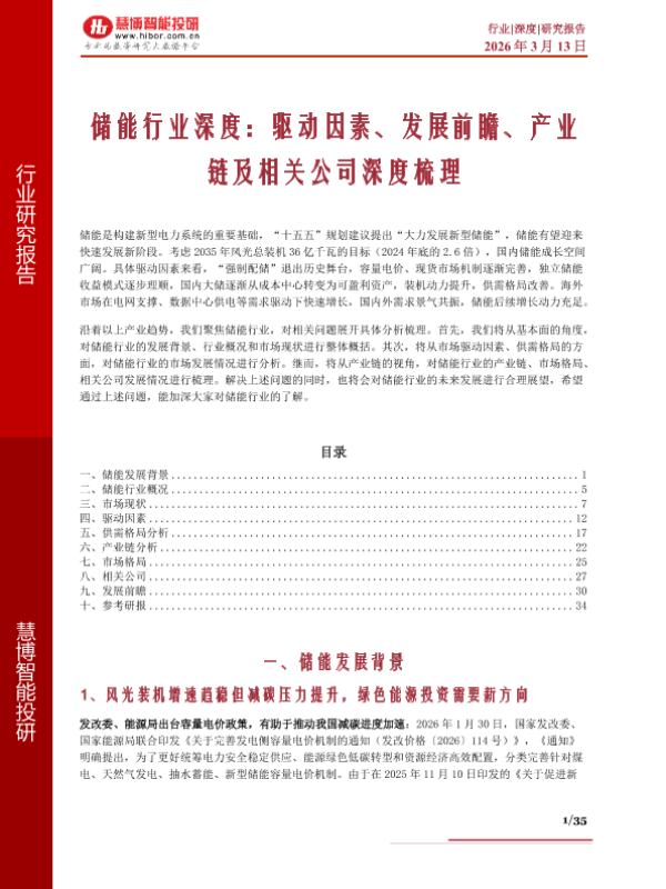 【慧博智能投研】【202603】储能行业深度:驱动因素、发展前瞻、产业链及相关公司深度梳理-35页 行业研究