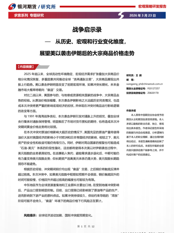 【银河期货】【202603】战争启示录—从历史、宏观和行业变化维度,展望美以袭击伊朗后的大宗商品价格走势-12页 证券期货研究报告