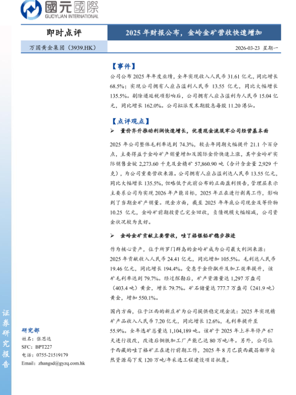 【国元国际】【202603】2025年财报公布,金岭金矿营收快速增加-3页 证券期货研究报告