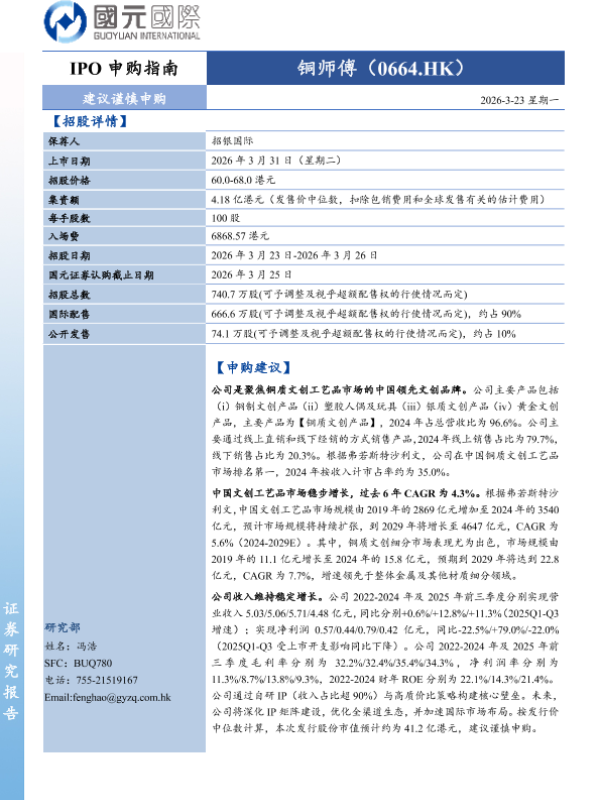 【国元证券】【2026】IPO申购指南|铜师傅(0664.HK)-3页 证券期货研究报告