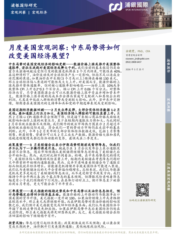 【浦银国际】【202603】月度美国宏观洞察:中东局势将如何改变美国经济展望?-13页 证券期货研究报告