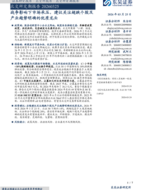【东吴证券】【202603】战争影响下市场承压,建议关注超跌个股及产业趋势明确的优质龙头-7页 证券期货研究报告