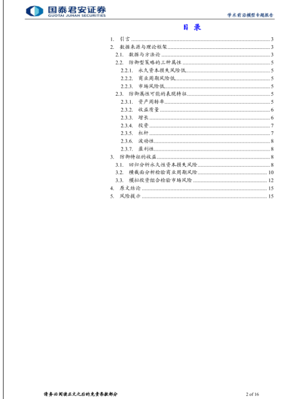 【国泰君安证券】【20230821】学术纵横系列之五十一:防御型股票的特征-15页 行业研究