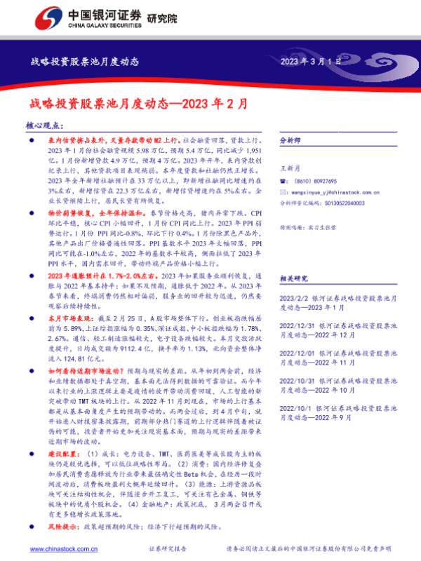 【银河证券】【20230301】战略投资股票池月度动态—2023年2月-16页 行业研究