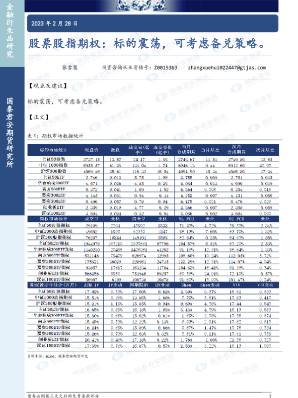 【国泰君安期货】【20230228】股票股指期权:标的震荡,可考虑备兑策略-32页 行业研究