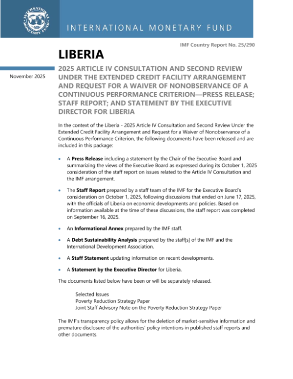 【国际货币基金组织】【202511】Liberia Staff Report for the 2025 Article IV Consultation and Second Review Under the Extended Credit Facility Arrangement, and Request for a Waiver of Nonobservance of a Performance Criterion—Debt Sustainability Analysis-149页