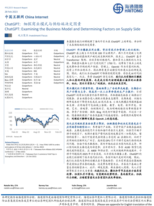 【海通国际】【20230228】中国互联网行业ChatGPT:细探商业模式与供给端决定因素-50页 行业研究