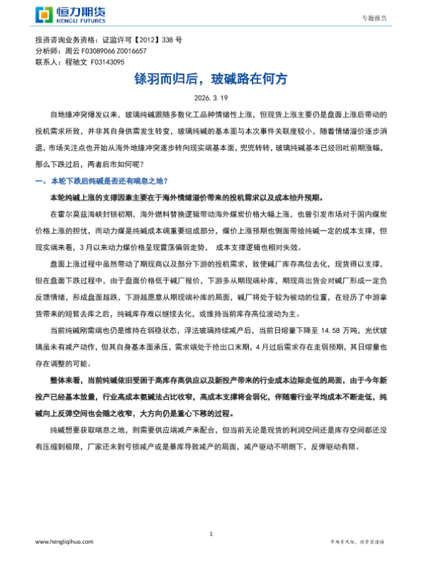 【恒力期货】【202603】铩羽而归后,玻碱路在何方-4页 证券期货研究报告