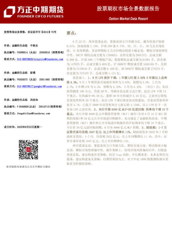 【方正中期期货】【20220822】股票期权市场全景数据报告-22页 行业研究