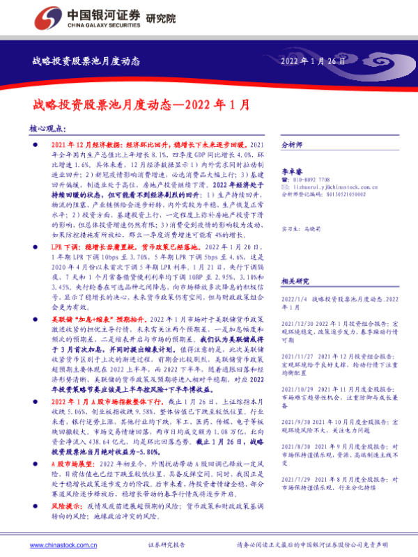 【银河证券】【20220126】战略投资股票池月度动态—2022年1月-17页 行业研究