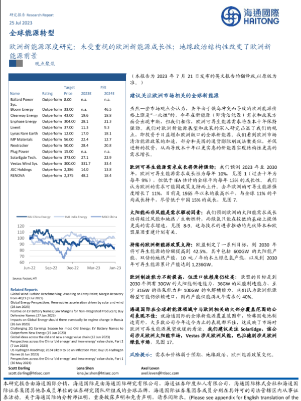 【海通国际】【20230725】欧洲新能源深度研究:未受重视的欧洲新能源成长性;地缘政治结构性改变了欧洲新能源前景-15页 行业研究