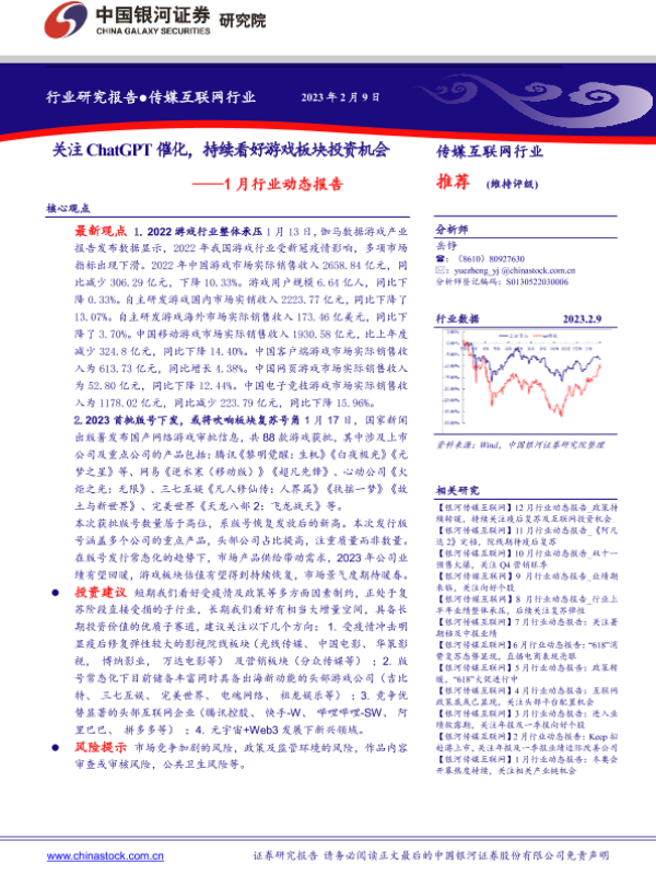 【银河证券】【20230209】传媒互联网1月行业动态报告:关注ChatGPT催化,持续看好游戏板块投资机会-16页 行业研究