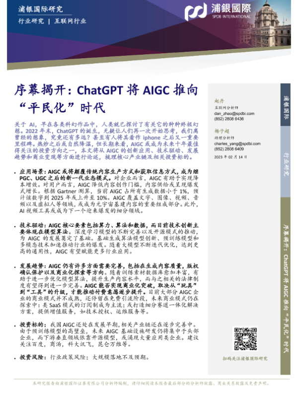 【浦银国际】【20230214】序幕揭开:ChatGPT将AIGC推向“平民化”时代-32页 行业研究