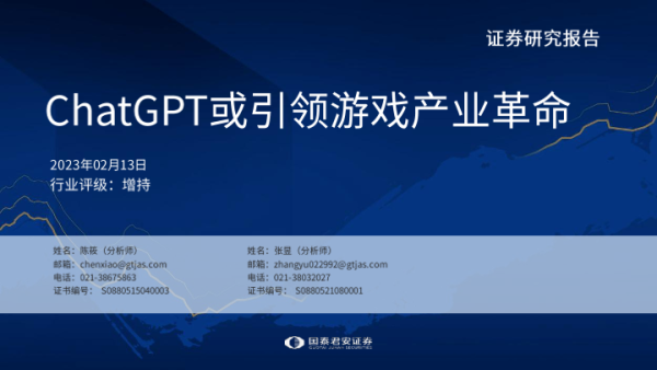 【国泰君安证券】【20230213】传媒行业:ChatGPT或引领游戏产业革命-22页 行业研究